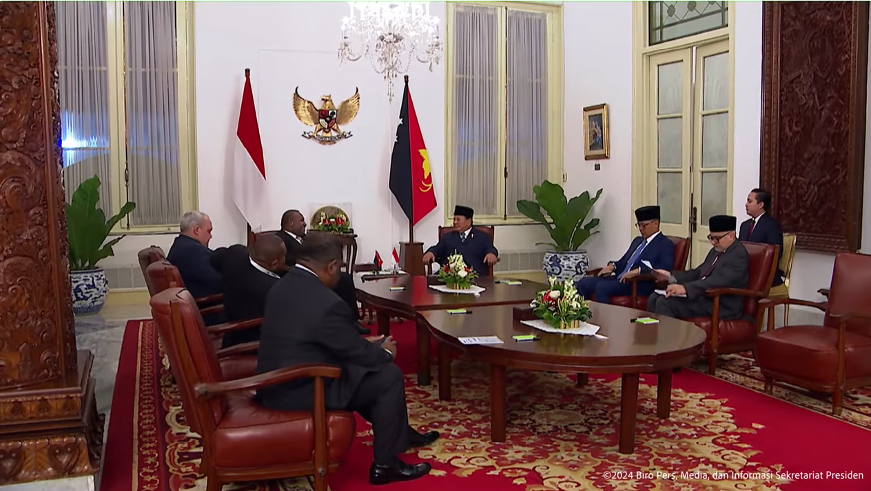 Tamu keempat adalah PM Papua Nugini James Marape. Keduanya juga bertemu secara bilateral dan dilakukan hal yang sama dengan pemimpin negara lain.